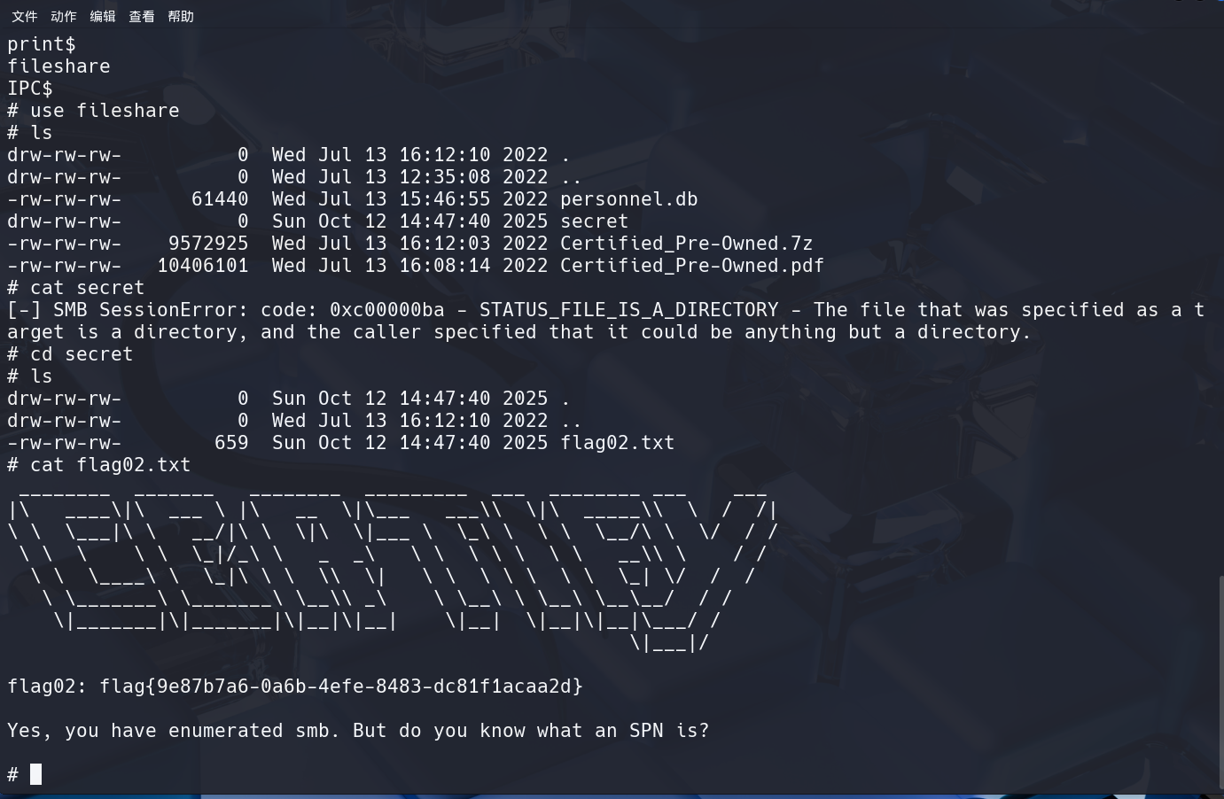 根据flag2的提示,与SPN有关,要打kerberoasting